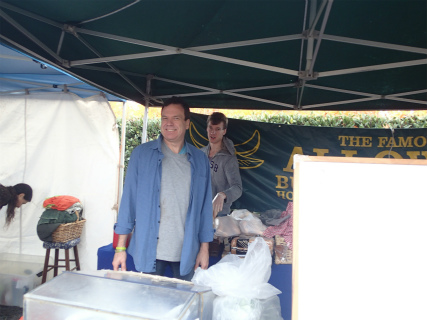 マーケットの写真だよ!!シュガーレモンクレープおいしかった!今回はバッファローホットドックの他にベーコンエッグマフィンも