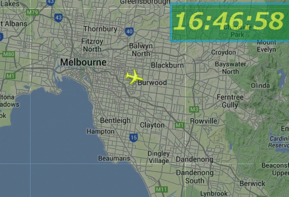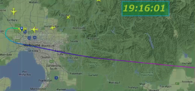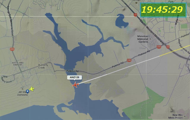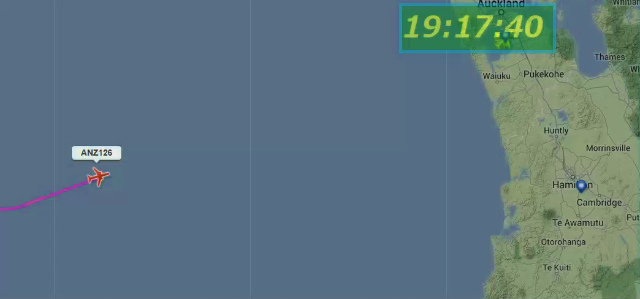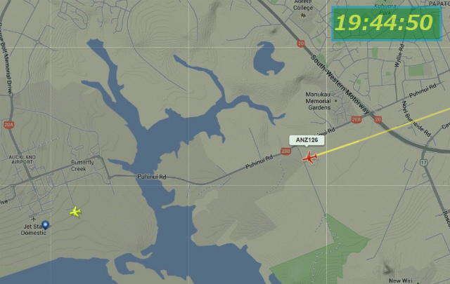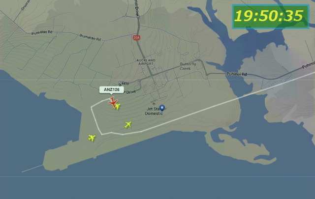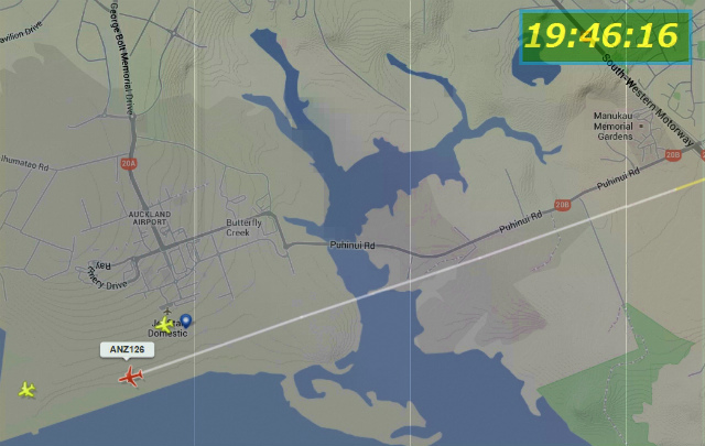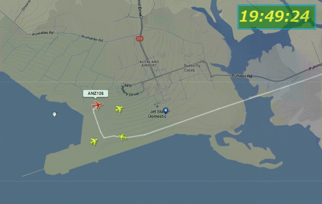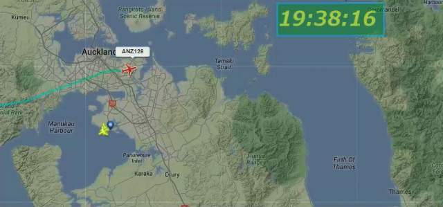 世界中の飛行機が今どこを飛んでいるかがわかるソフトでねーちんの飛行経路を見ていた。Auckland空港に12時近かったでしょう。(日本時間20時55分頃)
