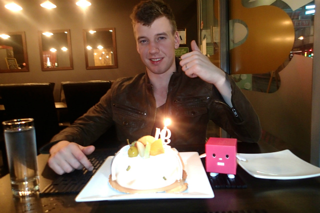 | 5月11日 ぱじぇの新しい会社の名刺とかフライヤーもらった!けっこうしっかりしてていいかんじ!! パジェの会社のHP 来週ぱじぇの誕生日だけど、来れないかもしれないから早めの誕生日会で日本食食べたよ! |