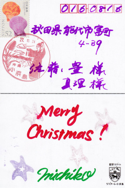 26日 クリスマスカード到着。切手と消印にご注目