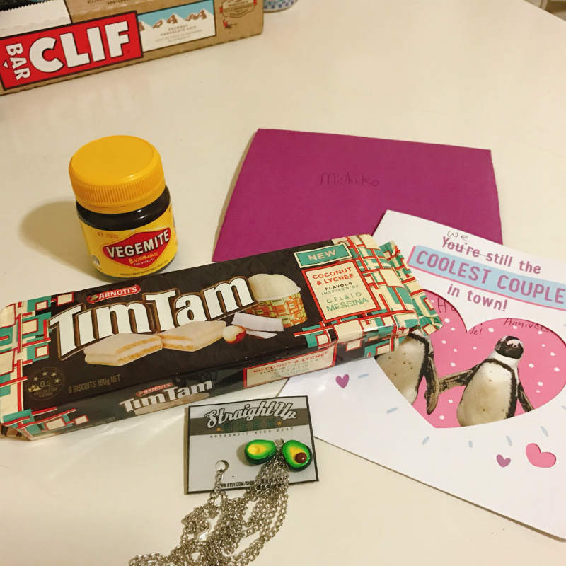 | 20日 パジェの荷物届いたー ティムタムとかベジマイトとかアニバーサリーのネックレスと手紙入ってた! |