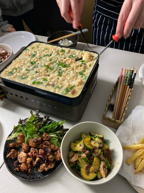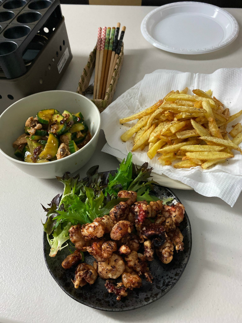 | 28日 シェルメイトとたこ焼きパーティーをした!タコの唐揚げとかも作った |
