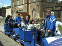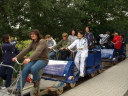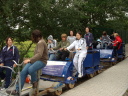 | 途中にある小さな町にも寄った。乗り物は、全員でこぐタイプの自転車。 |